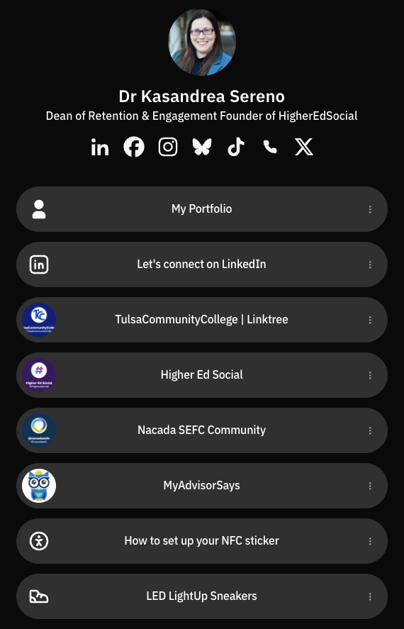 Kasandrea jen pípla svou konferenční visačku k mému telefonu a objevila se její stránka Linktree s odkazy na LinkedIn a další její projekty a věci.